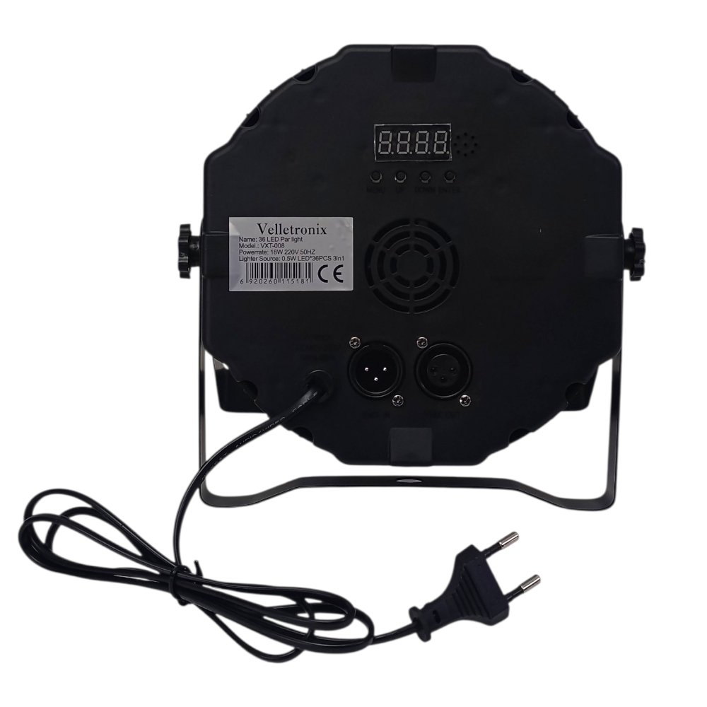 جهاز إضاءة احترافي من Velletronix موديل VXT-008 بقدرة 18 وات، مصمم لإضاءة الحفلات والصالات والمناسبات.
