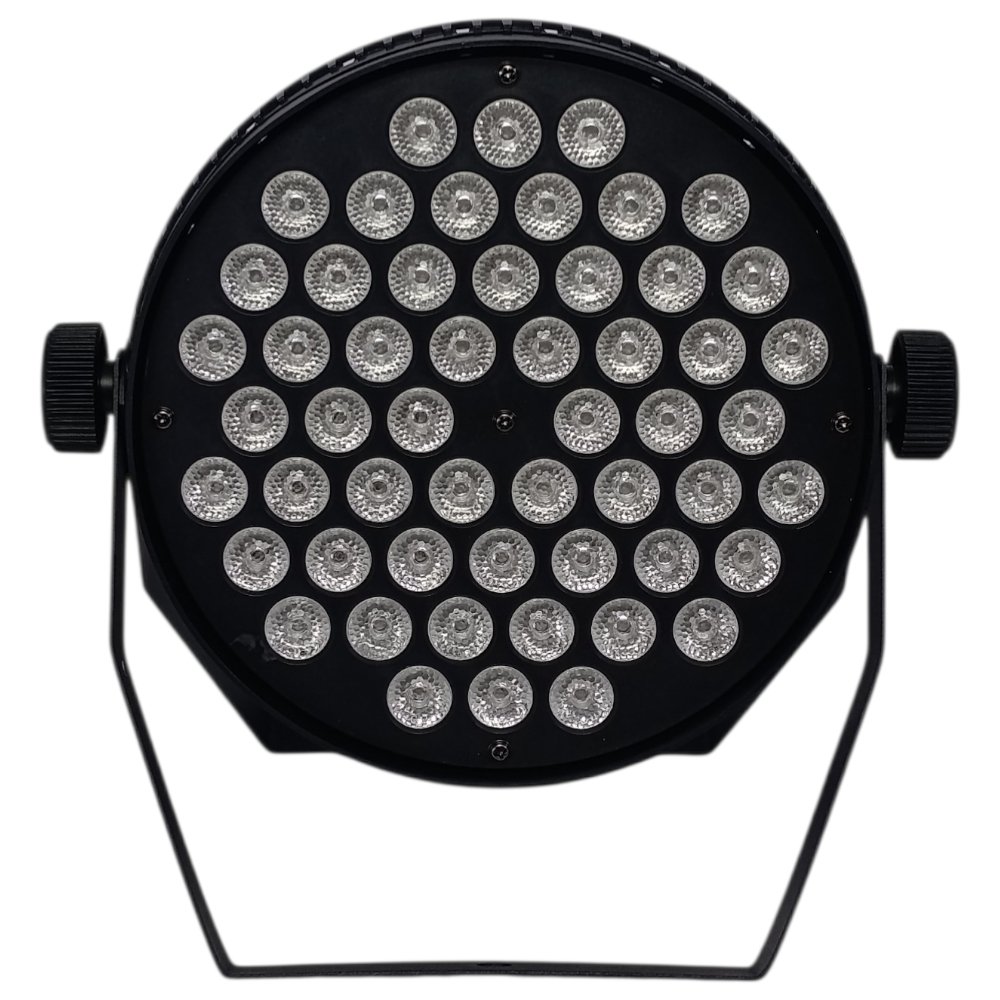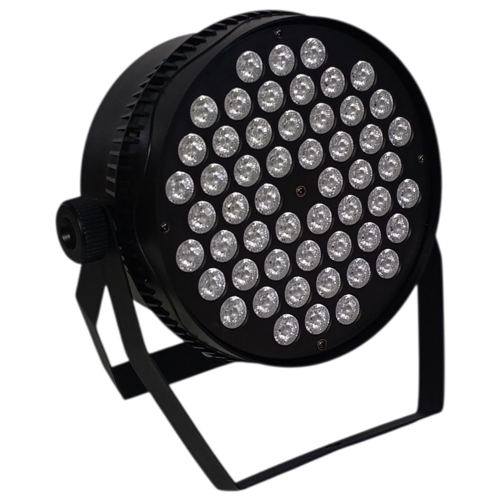 يعطي إضاءة عالية الكثافة مع توزيع واسع وألوان قوية، ويُستخدم عادة في DJ والمناسبات الكبيرة بفضل دعمه لأنظمة التحكم مثل DMX ووضع الصوتي. أجهزة بهذا المستوى توفر تأثيرات لونية احترافية وإمكانية مزامنة مع الموسيقى