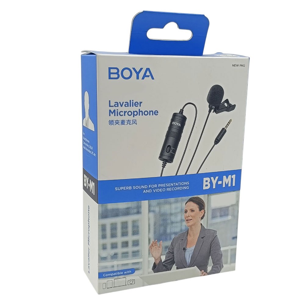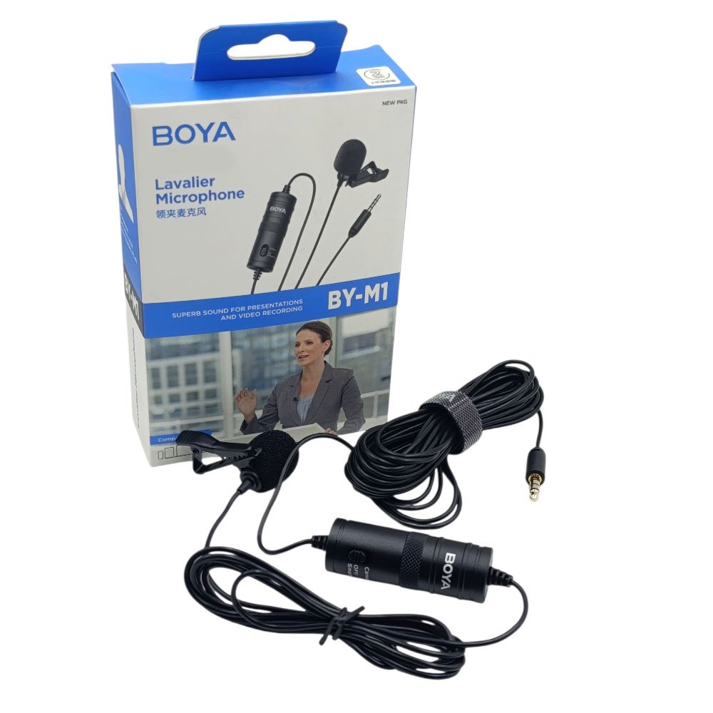 ميكروفون BOYA BY-M1 الأصلي هو ميكروفون لافالير احترافي (مكرفون صدر)، يتميز بجودة صوت عالية ومناسبة للتصوير، البث، والعروض التقديمية.