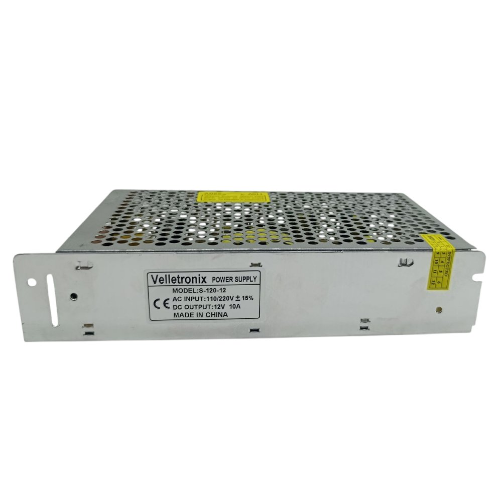 دارة تغذية احترافية من Velletronix بقدرة عالية لتوفير تيار مستمر 12 فولت / 10 أمبير، مصممة لتشغيل الأجهزة الإلكترونية المختلفة بثبات وأمان. تتميز بهيكل معدني قوي مع فتحات تهوية لتبديد الحرارة، مما يجعلها مثالية للاستخدام المستمر في الأنظمة الصناعية والإضاءة والاتصالات.