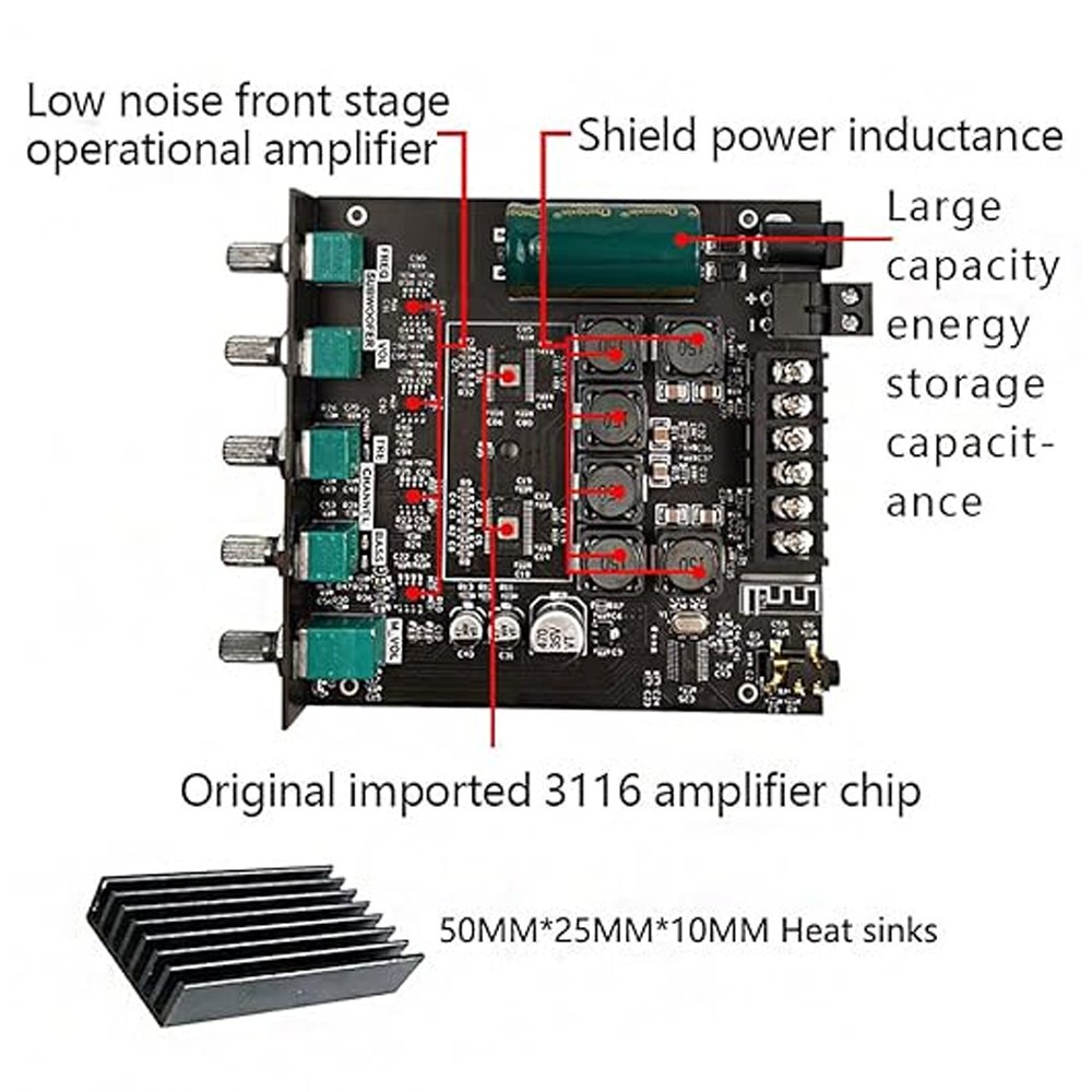 🔸 2.1 Channel Power Amplifier – Bass & Treble Control