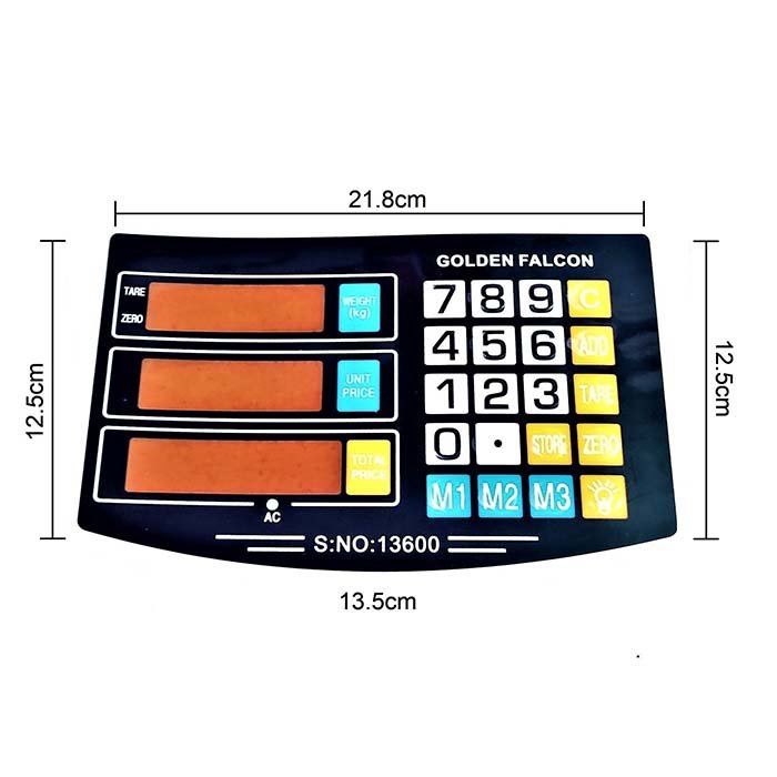 لزقة ميزان (ستيكر) كبيرة وكاملة مخصّصة لموازين القَبّان والموازين الإلكترونية التجارية، تحتوي على لوحات العرض + لوحة الأرقام + أزرار الوظائف والذاكرة. تُستخدم كبديل مباشر للواجهة الأمامية التالفة أو القديمة، وتمنح الميزان شكلاً جديدًا وعملية استخدام واضحة.