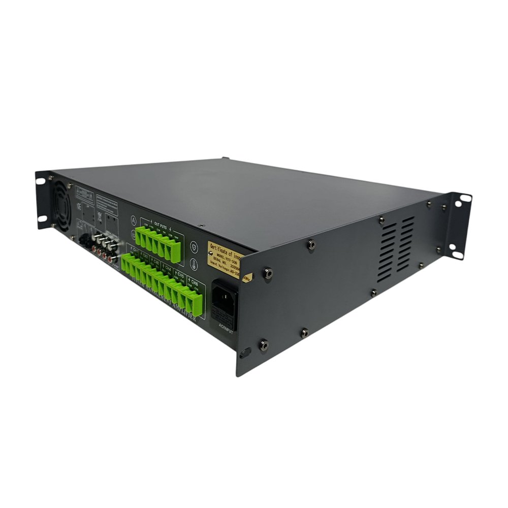 يدعم نظام التشغيل 70–100 فولت لأنظمة الإذاعة المركزية (PA System)، ويتميز بصوت نقي قوي مع تصميم احترافي معدني مزوّد بنظام تبريد ذكي لضمان استقرار الأداء في الاستخدام المستمر.