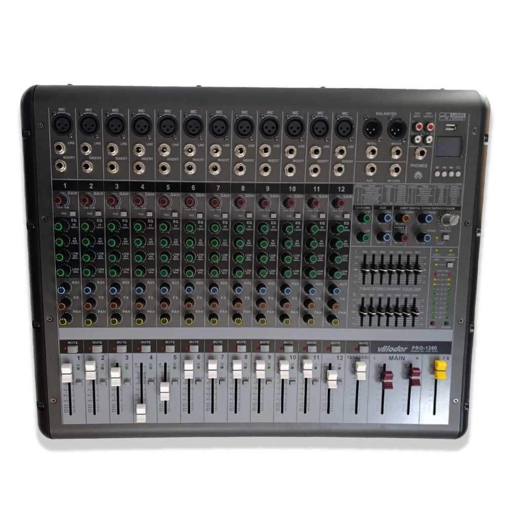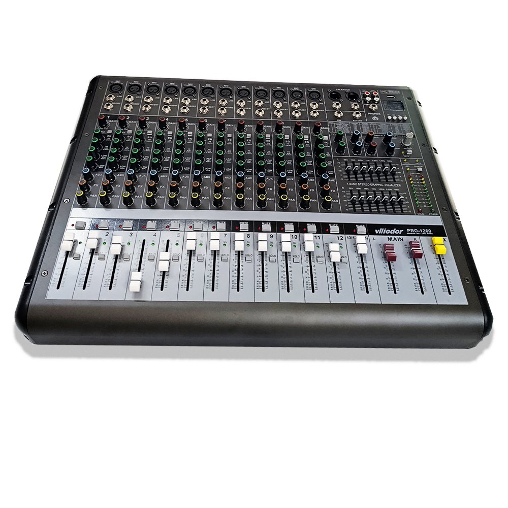 🎛️ VLLIODOR PRO‑1260 – ميكسر صوت احترافي بـ 12 قناة – 650 واط × 2