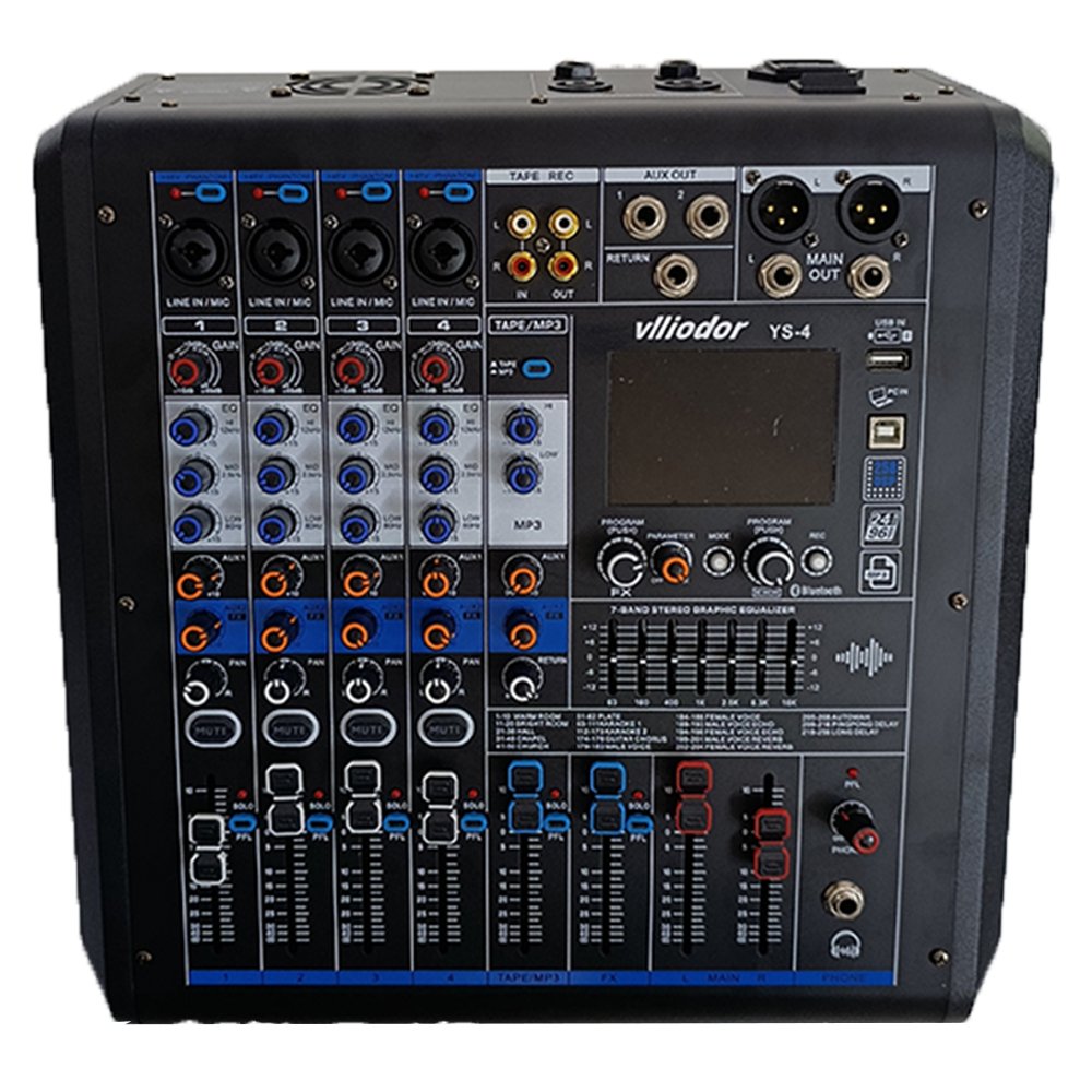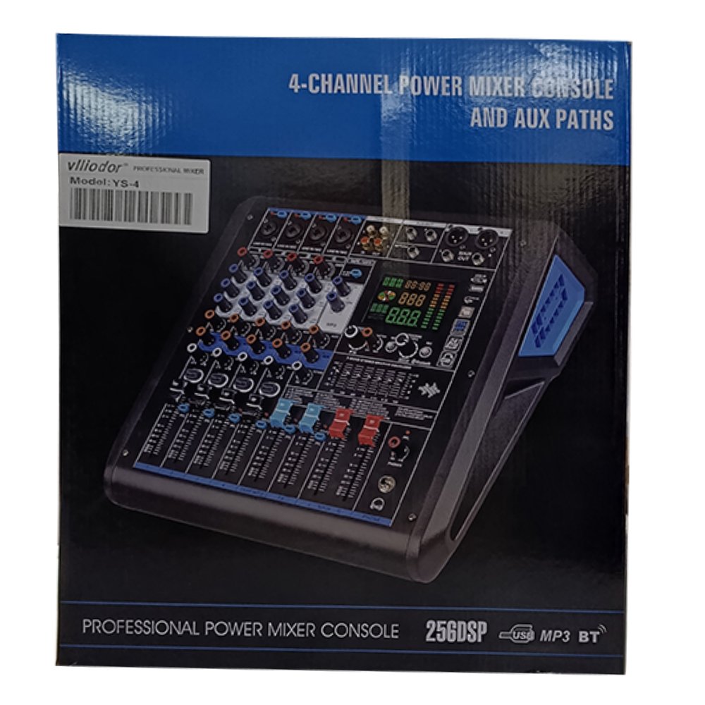 ميكسر الصوت الاحترافي Vlliodor YS-4 مصمم ليمنحك أداءً قويًا وتحكمًا دقيقًا بالصوت في مختلف الاستخدامات.