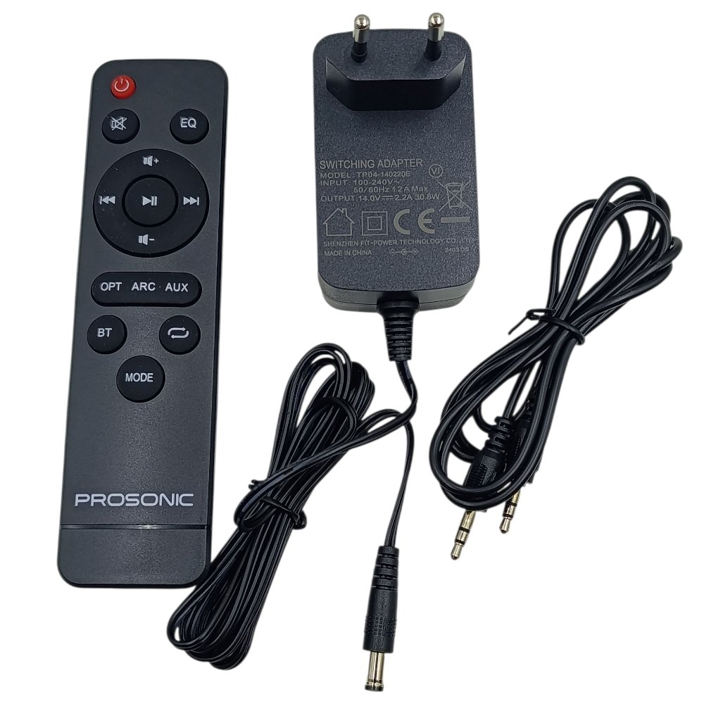 طقم مسرح منزلي احترافي من PROSONIC بتقنية 2.0 قناة، تصميم أنيق وجودة صوتية عالية مناسبة لشاشات التلفاز الذكية، يوفر وضوح ممتاز في الصوت وباس جيد، مع إمكانية التوصيل عبر الكبل، USB والبلوتوث.