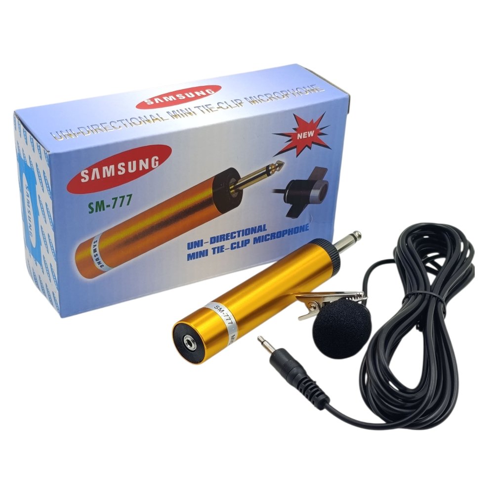 مايك صدر سامسونغ SM-777A بتصميم صغير وجودة صوت واضحة، مناسب للمحاضرات والتسجيل والبث المباشر مع كابل طويل وملقط تثبيت.